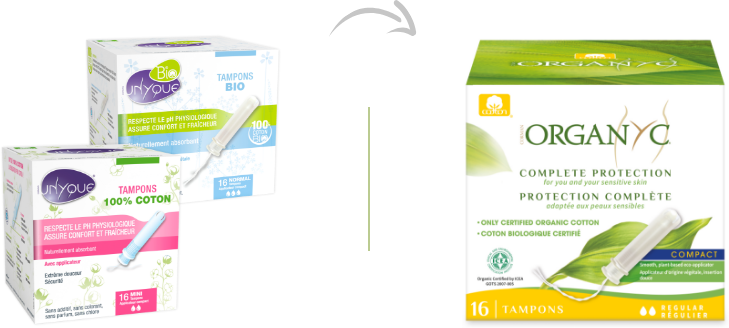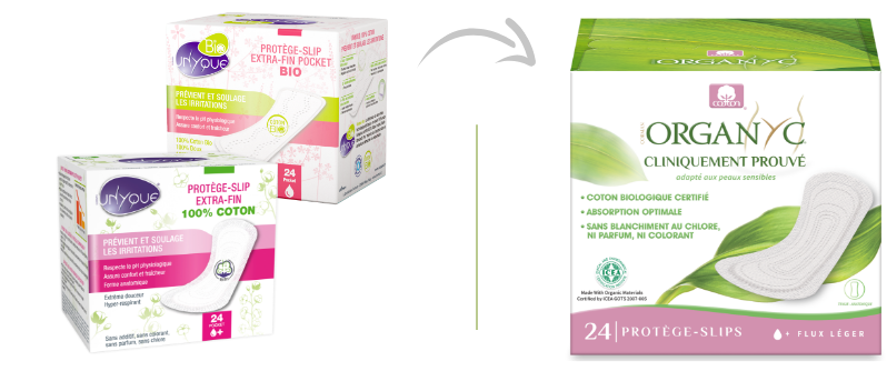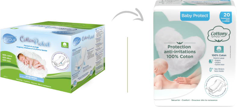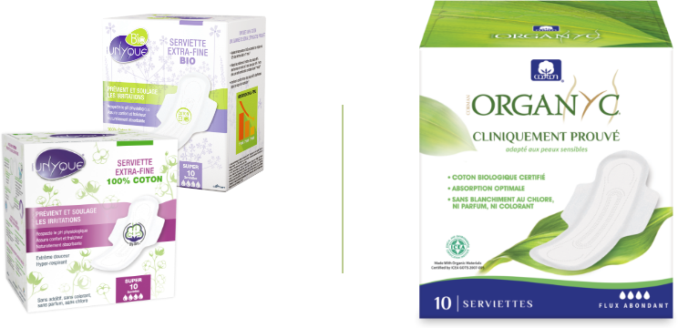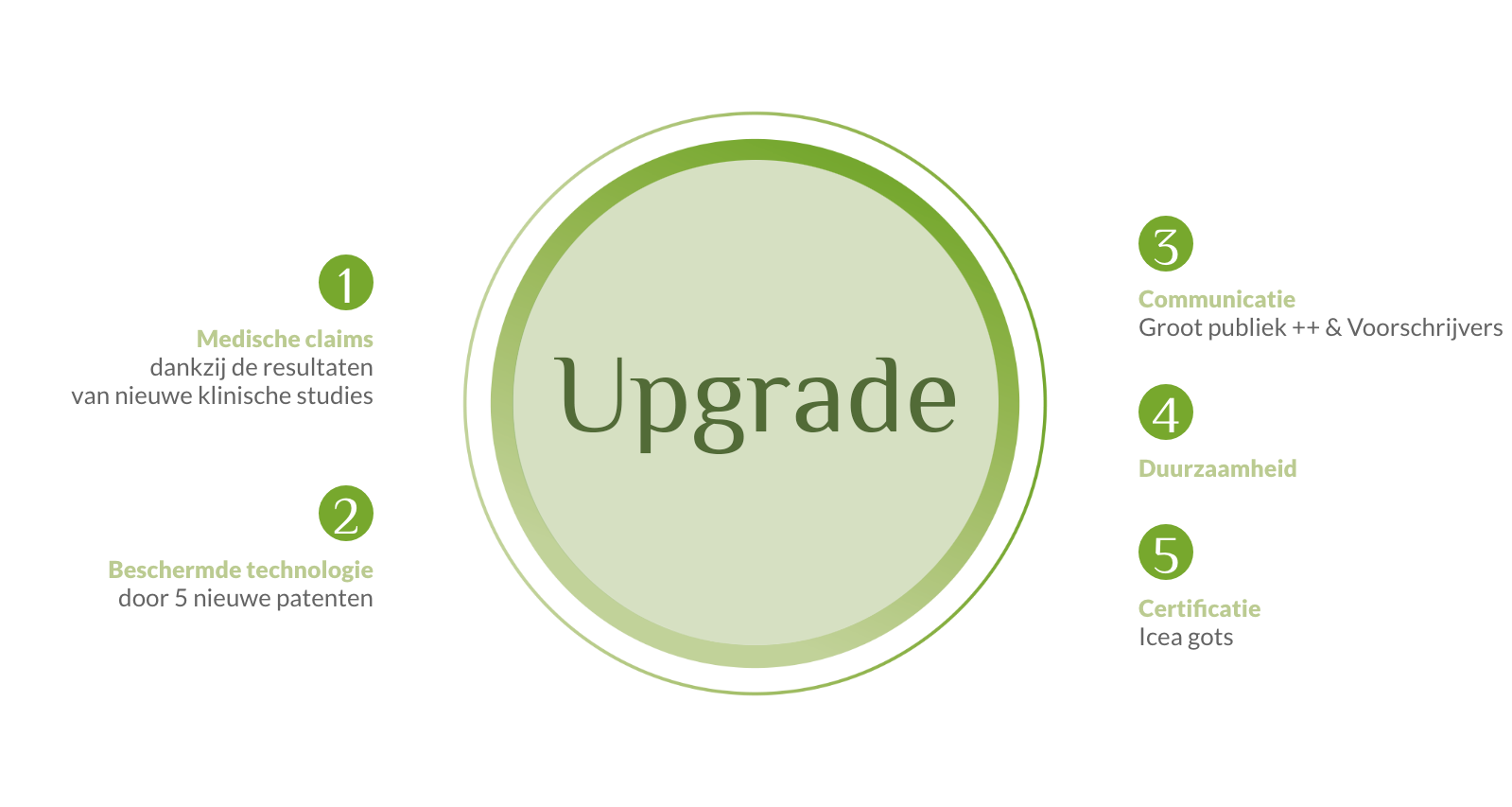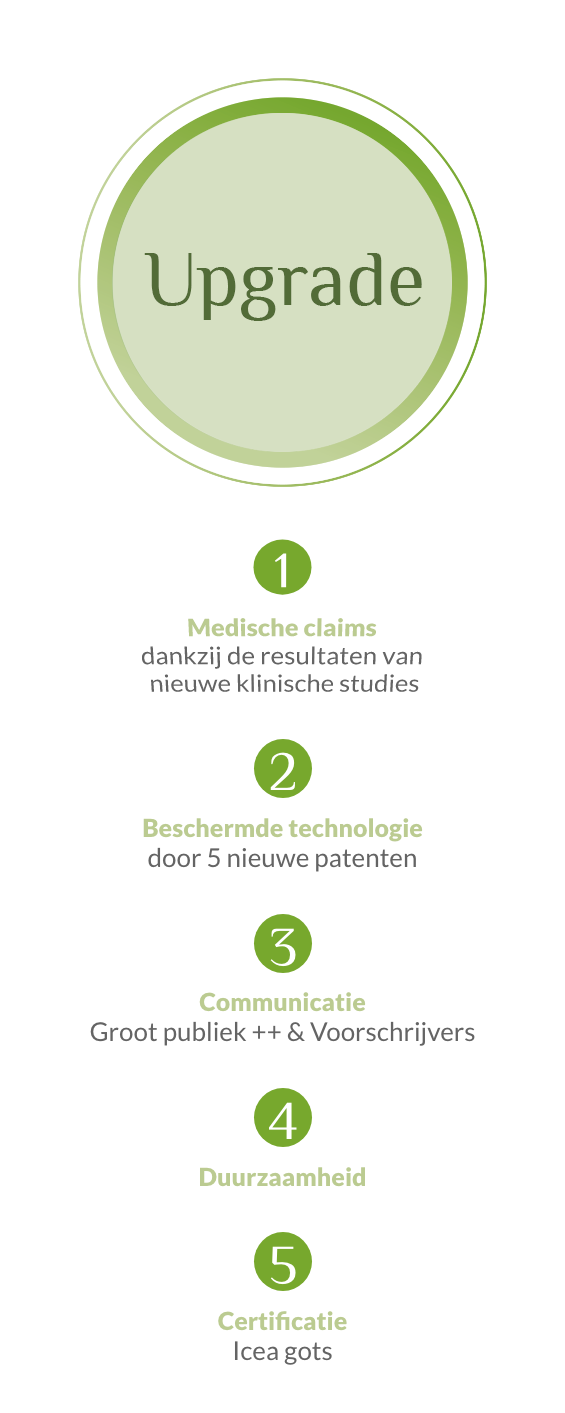 in contact met de huid en in de absorberende kern. Technologie beschermd door 5 patenten.